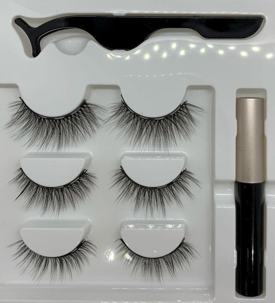-Posteriormente colocar la tira de pestañas en la línea trazada con ayuda de las pinzas.