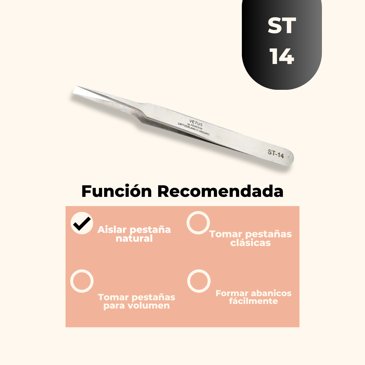 Uso: Pinza recta de excelente calidad, ideal para el aislamiento de pestañas.